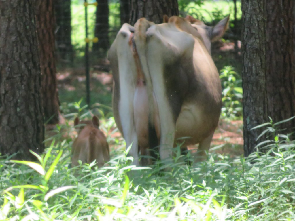 Her dam, Teapot is a moderate producer. At 38″ she is a teensy thing that produces plenty for a free-nursing calf, and enough for the family table depending on point of lactation and size of nursing calf.